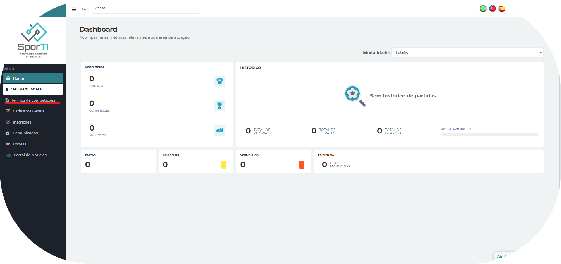 No menu lateral, clique em “Termos de Competições”.