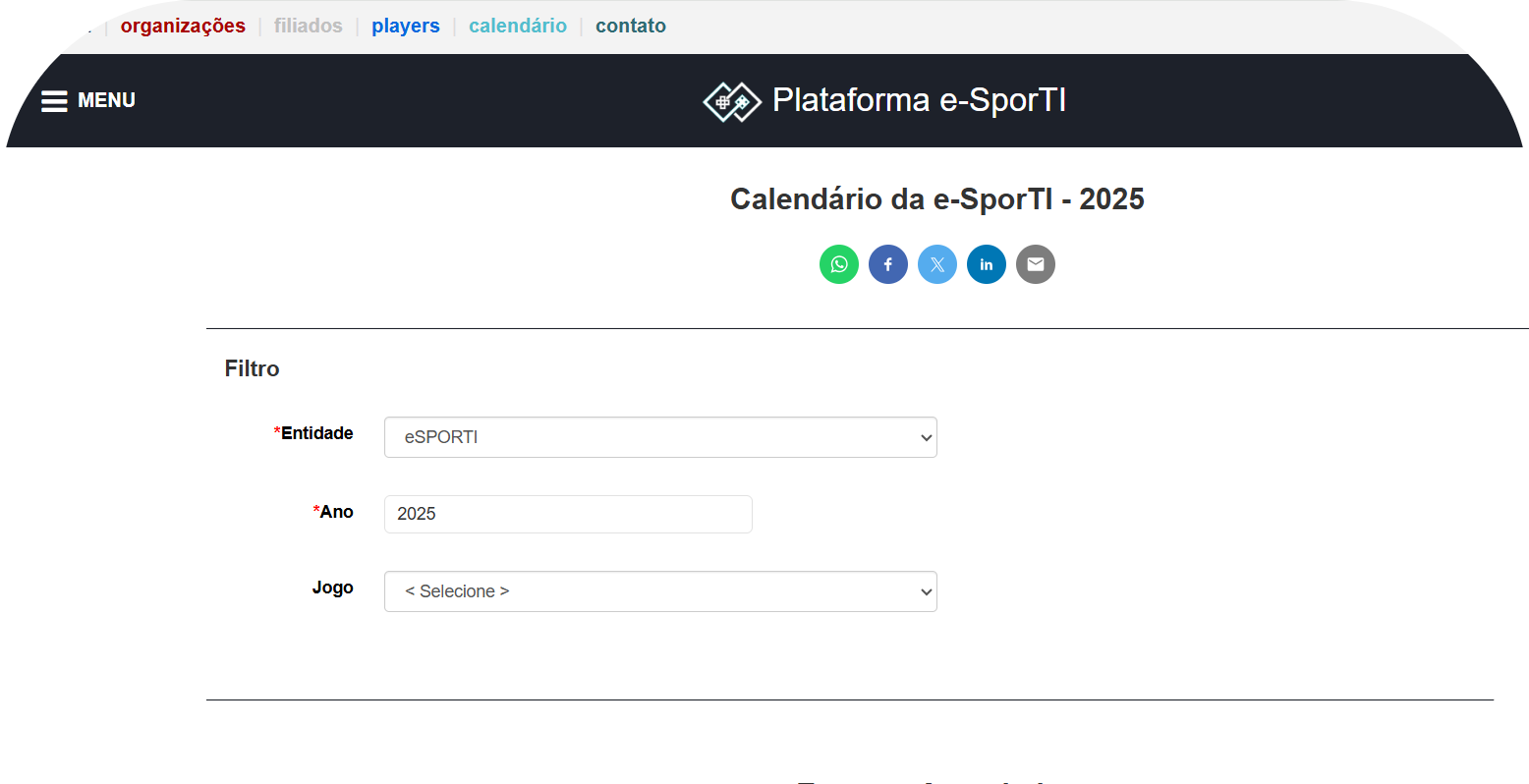 Você será direcionado para a página “Calendário da e-SporTI”, onde poderá consultar todos os eventos e competições agendados para o ano.