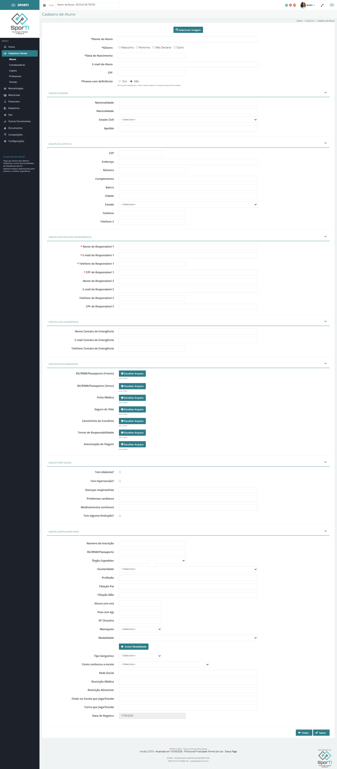 - O cadastro de pelo menos um responsável é indispensável, pois ele será o contato principal para cobranças e comunicados da escola.