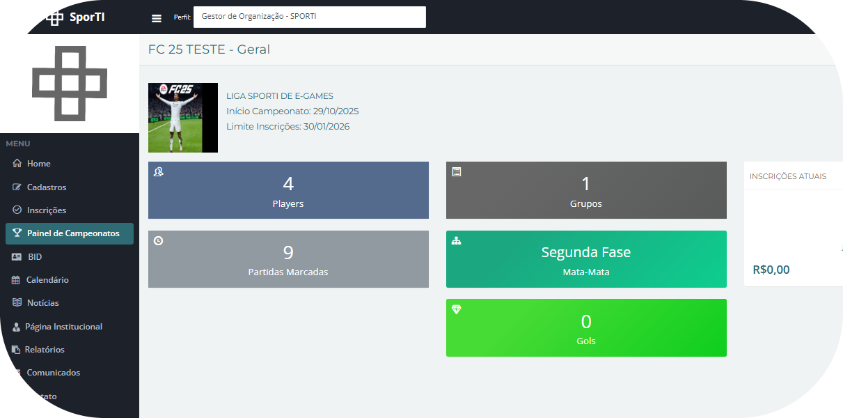 Vá até o menu lateral e clique em “Painel de Campeonatos”.