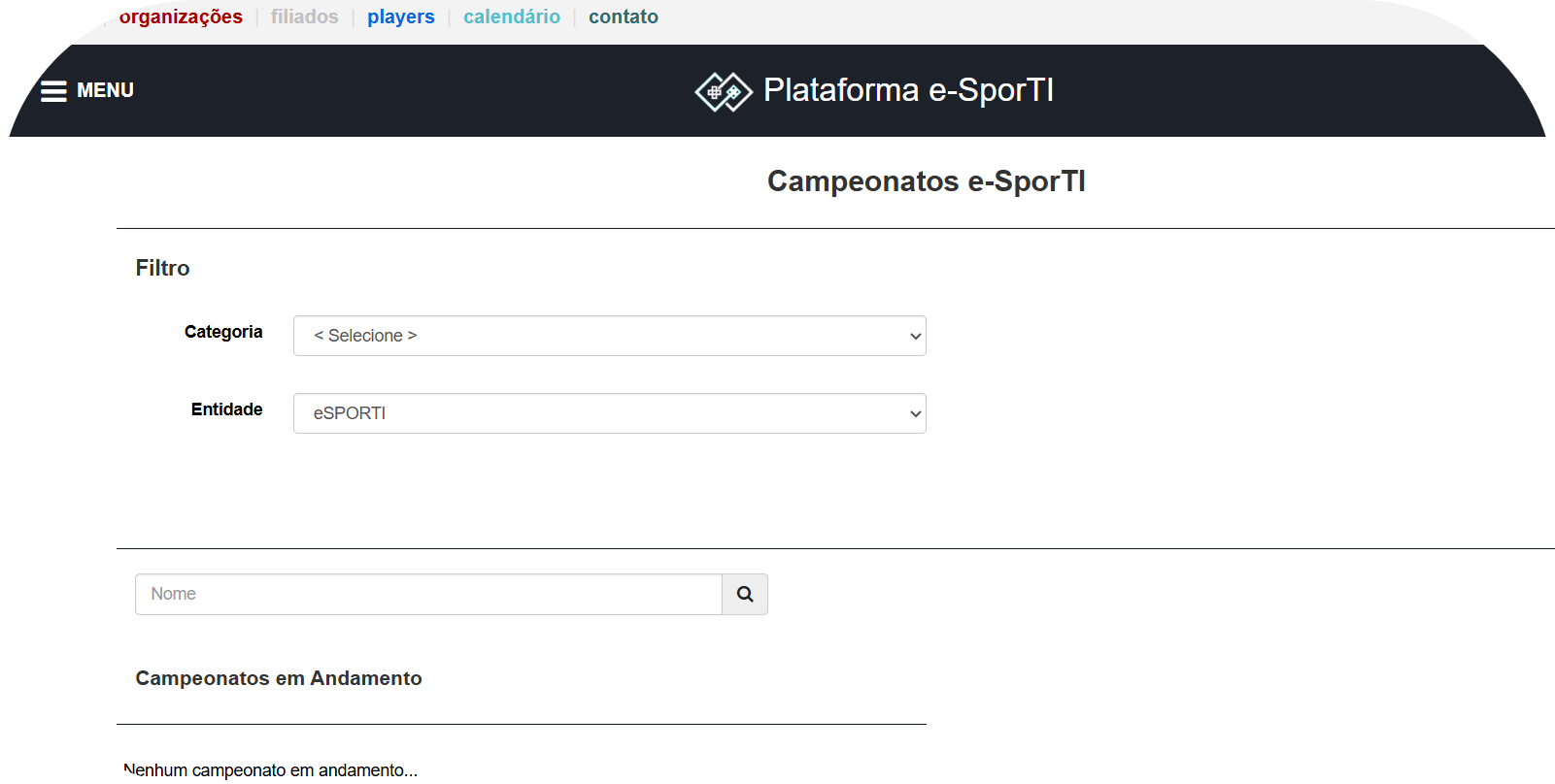 Isso o levará à página “Campeonatos e-SporTI”, onde você pode consultar as competições disponíveis.